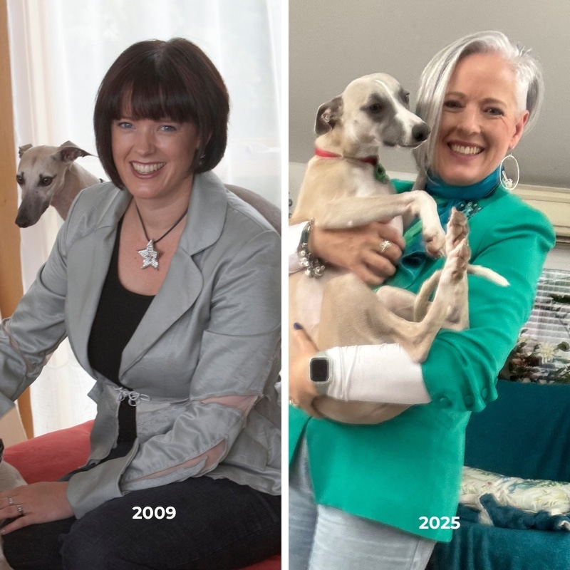 I’ve changed over the past 17 years, and I bet you have too, I’ve gotten divorced and remarried, I’ve embraced my grey hair and now I need glasses to read, though one thing remains the same in my life, whippets will always be a part of it!