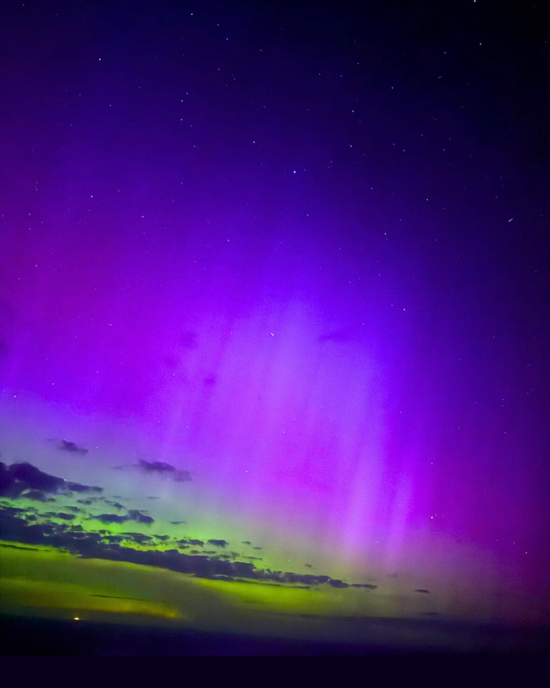 Our colour-receiving cones could see a faint green glow on the horizon and faint streaks of light rising into the sky (these are known as beams or ribbons), but missed the reds, pinks, and purples that are seen in auroras.